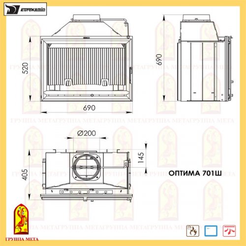 Каминная топка Мета Eurokamin Оптима 701Ш