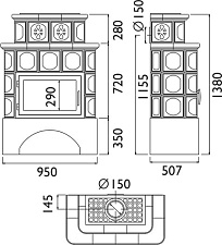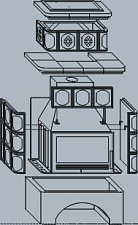 Корпус каминной топки выполнен из жаропрочной стали, колосники и патрубки из чугуна.