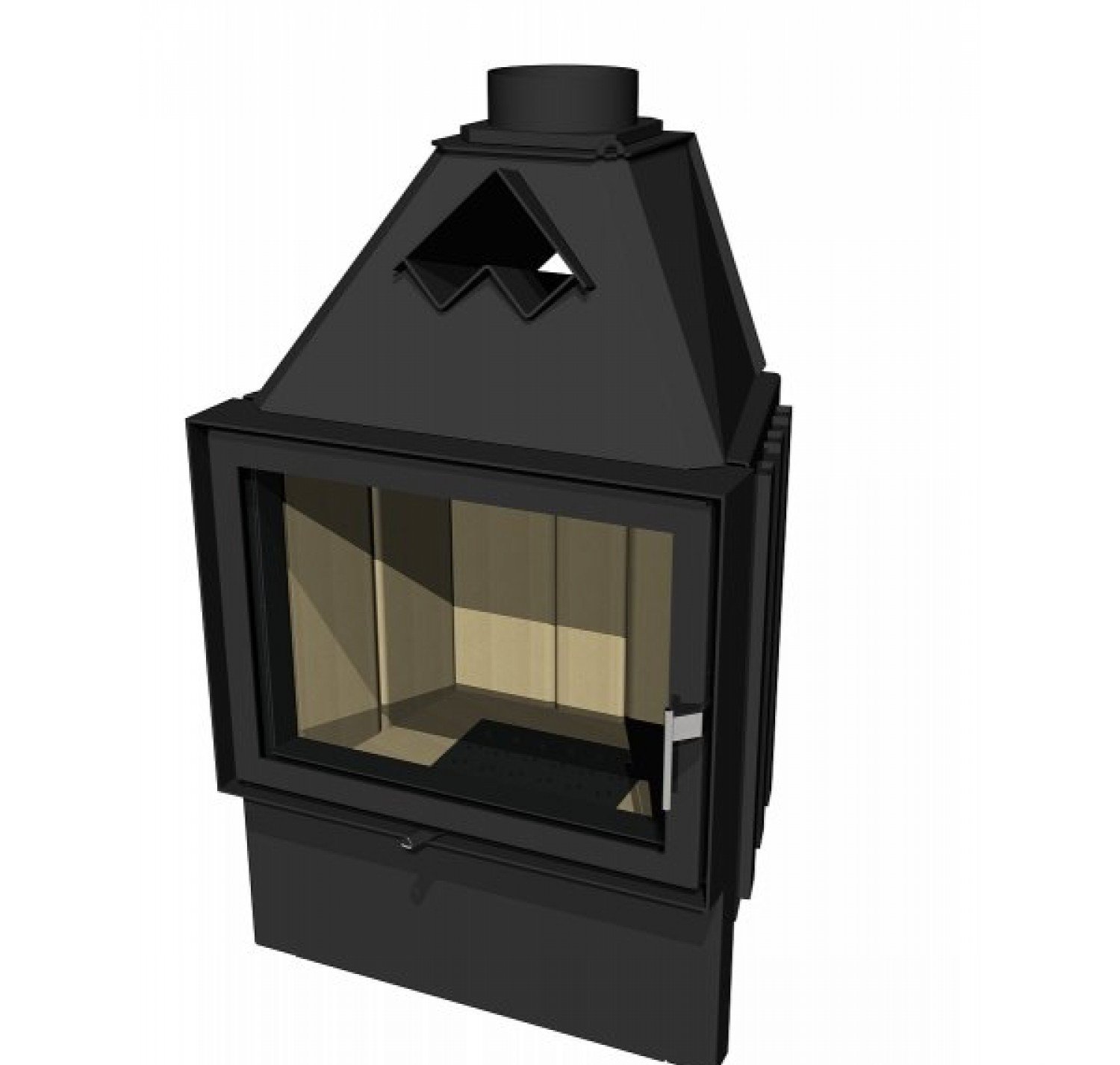Корпус каминной топки выполнен из жаропрочной стали, колосники и патрубки из чугуна.