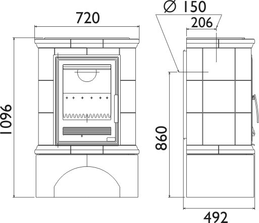 - Диаметр дымохода, (мм) 150