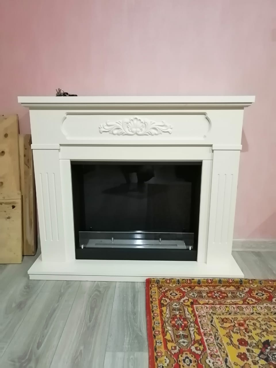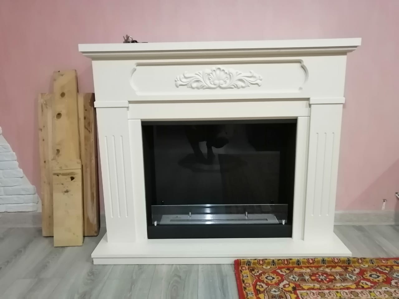 Наш клиент из Воронежа прислал фото сделанного под заказ камина Firezo Leon. Портал выполнен из МДФ молочного цвета и имеет классический стиль.